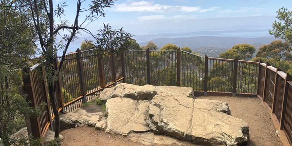 Sphinx Rock Lookout is a large sandstone rock platform measuring 100m x 100m. Sphinx Rock is accessible via a short level walk from The Springs, rewarding visitors with great views of the Organ Pipes, Hobart and the Derwent River. A further 450m down the Lower Sawmill Track and Shoobridge Track will take you to the Octopus Tree.
